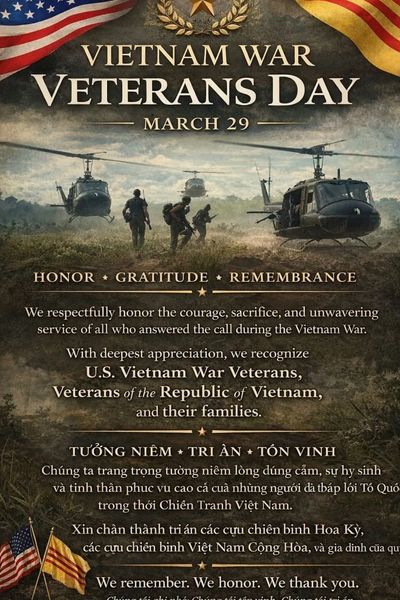 On this National Vietnam War Veterans Day, we honor and thank all Vietnam veterans for their courage, sacrifice, and unwavering service during one of the most difficult chapters in our history. We remember those who never returned, those who still carry the wounds of war, and those who came home without the recognition they deserved. Your sacrifices were not in vain, your legacy lives on in the freedoms we enjoy today. We also honor the bond shared with South Vietnamese soldiers who stood beside you in the name of freedom. Their courage and sacrifice will never be forgotten.